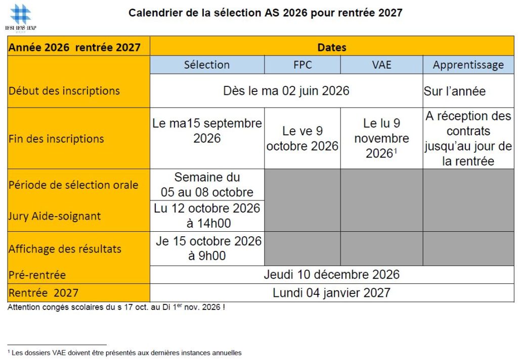 La rentrée aura lieu le 4 janvier 2027 pour une fin de formation le 04 décembre 2027.